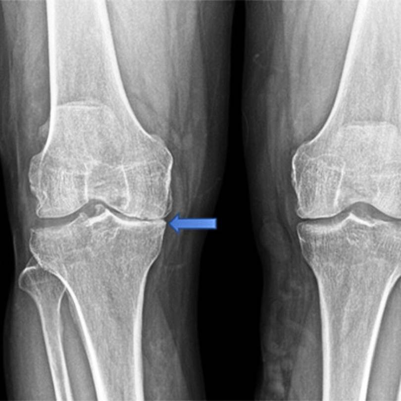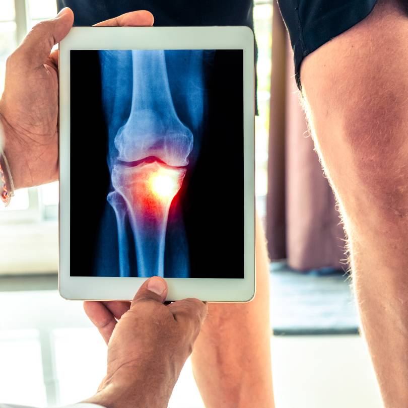 Degeneration of knee cartilage causes chronic pain and stiffness, limiting mobility in daily activities.